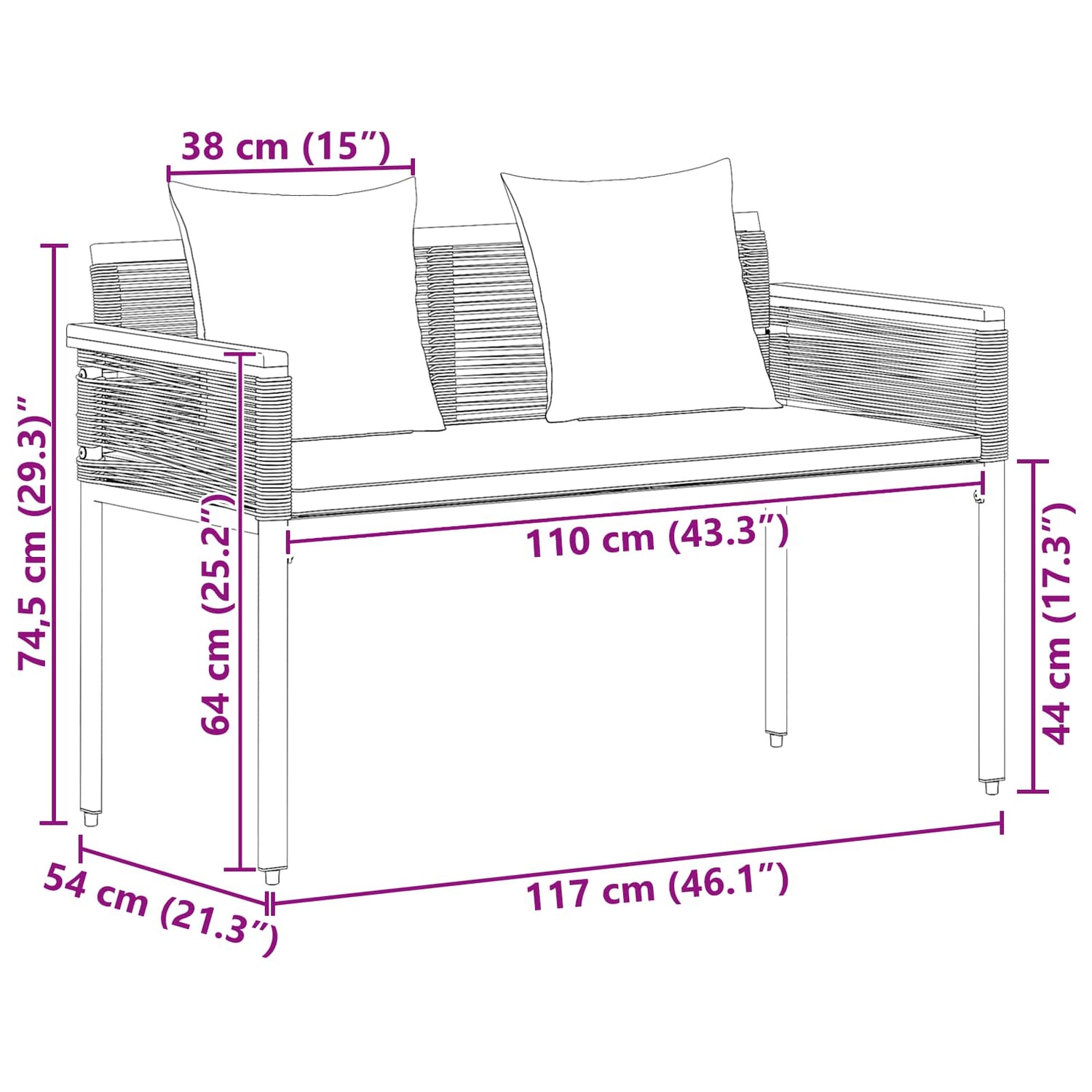 Outdoor Bench with Cushion Black 117 x 54 x 74.5 cm Poly Rattan