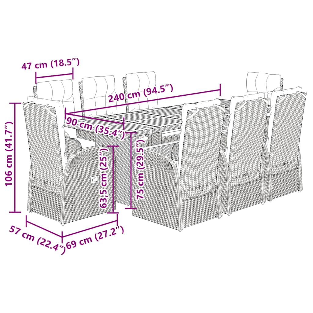 9 Piece Garden Dining Set with Cushions Black Poly Rattan is backordered and will ship as soon as it is back in stock.