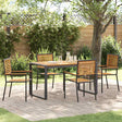 Garden Dining Set 5 pcs Black and Wood Poly Rattan