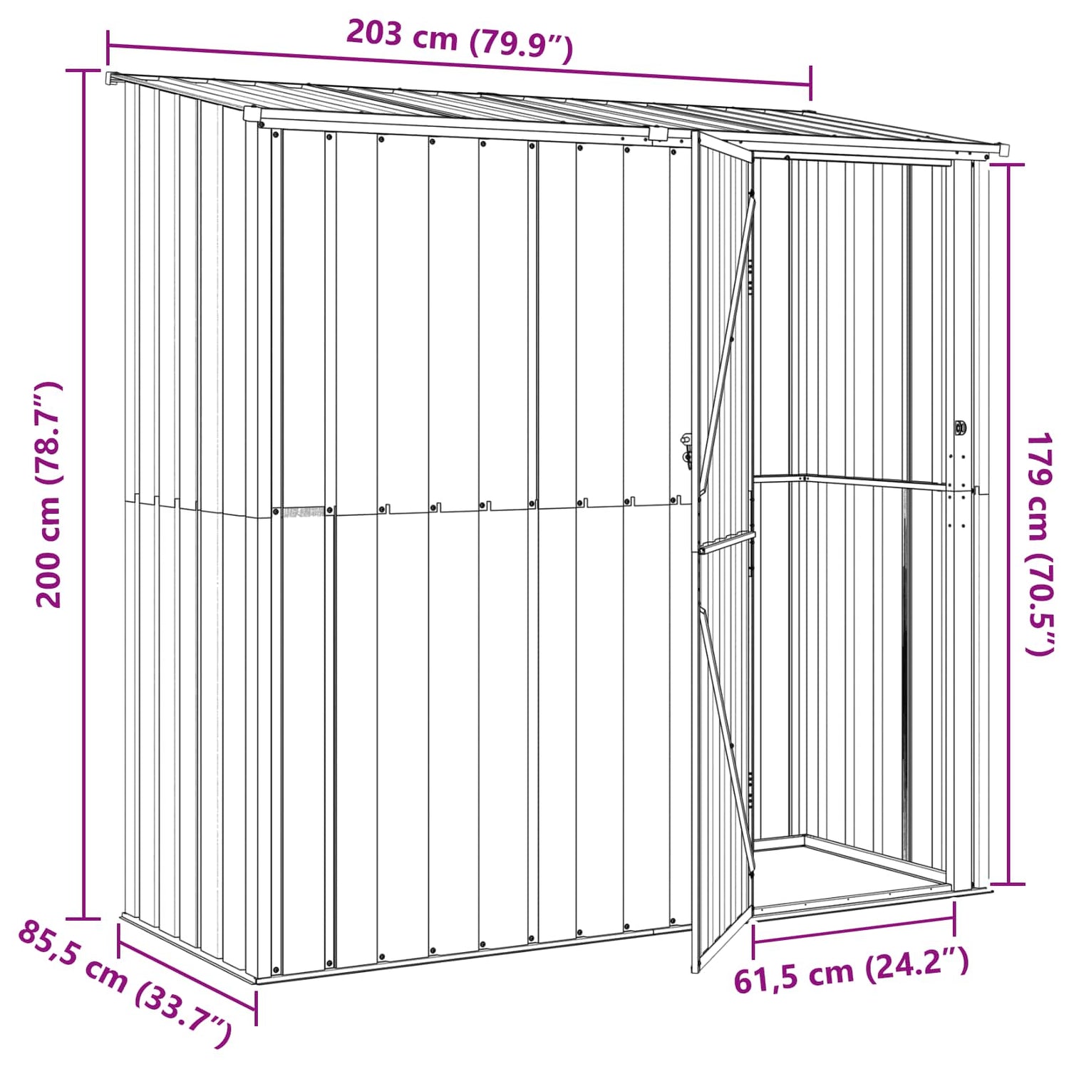 Garden Sheds Brown 203 x 85.5 x 200 cm Metal