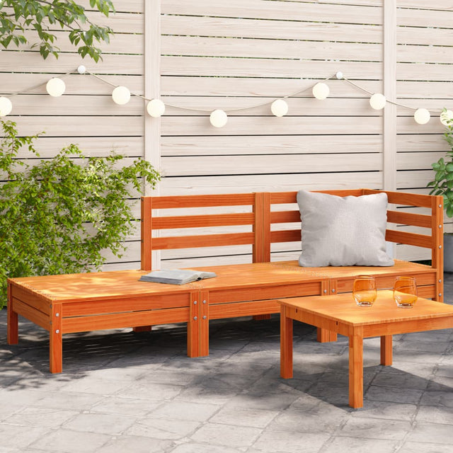 Garden Sofa 3-Seater Wax Brown Solid Wood Pine