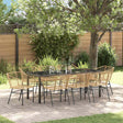 This garden dining set effortlessly merges modern aesthetics with functional durability, making it an ideal centerpiece for outdoor gatherings in gardens and terraces. The overarching style of modern simplicity integrates flawlessly with the sleek yet practical form, creating a blend that ensures both style and substance for any outdoor dining experience. Designed to cater to contemporary tastes, the dining set offers ample room to host effortlessly, serving as an inviting platform for summer festivities or leisurely afternoons shared with family and friends. Materials: This exquisite dining set is crafted primarily from Poly Rattan, favored for its dependability and ability to resist the elements. The addition of powder-coated steel offers a strong framework, assuring stability and enhanced durability over time. Completing the aesthetics is a glass surface providing a sleek, modern finish that integrates seamlessly into various outdoor settings, ensuring minimal maintenance for a polished and inviting appeal. Included Components: This set includes a durable powder-coated steel frame that forms the robust foundation of the dining setup. The glass table surface provides a refined touch, offering an easy-to-clean area ideal for daily use. Matching the frame's strength, Poly Rattan armrests grant both comfort and ergonomic alignment. Together, the components contribute to a cohesive look that feels both sturdy and sophisticated. Features /Function /Design: The set's UV-resistant quality is pivotal to maintaining a pristine condition despite extended sun exposure. The robust design contributes to a resilient seating experience, emphasizing longevity in outdoor conditions. Featuring comfortable seating and a stable frame, it promises enduring enjoyment whether at weekend brunches or evening dinners under the stars. Recommended Uses: Designed for outdoor living, this set thrives in gardens and terraces, transforming any space into an inviting outdoor dining atmosphere. With its modern design, the set harmoniously fits with minimalist and functional settings, offering a versatile choice that adapts from formal gatherings to casual mementos. Care &Maintenance: To maintain this dining set's immaculate condition, utilize a protective cover when not in use. This precaution will ensure longer lifespan and reduced wear even through harsh seasonal changes. Regular cleaning with a dry cloth will keep the glass and Poly Rattan elements pristine, making maintenance straightforward and simple.