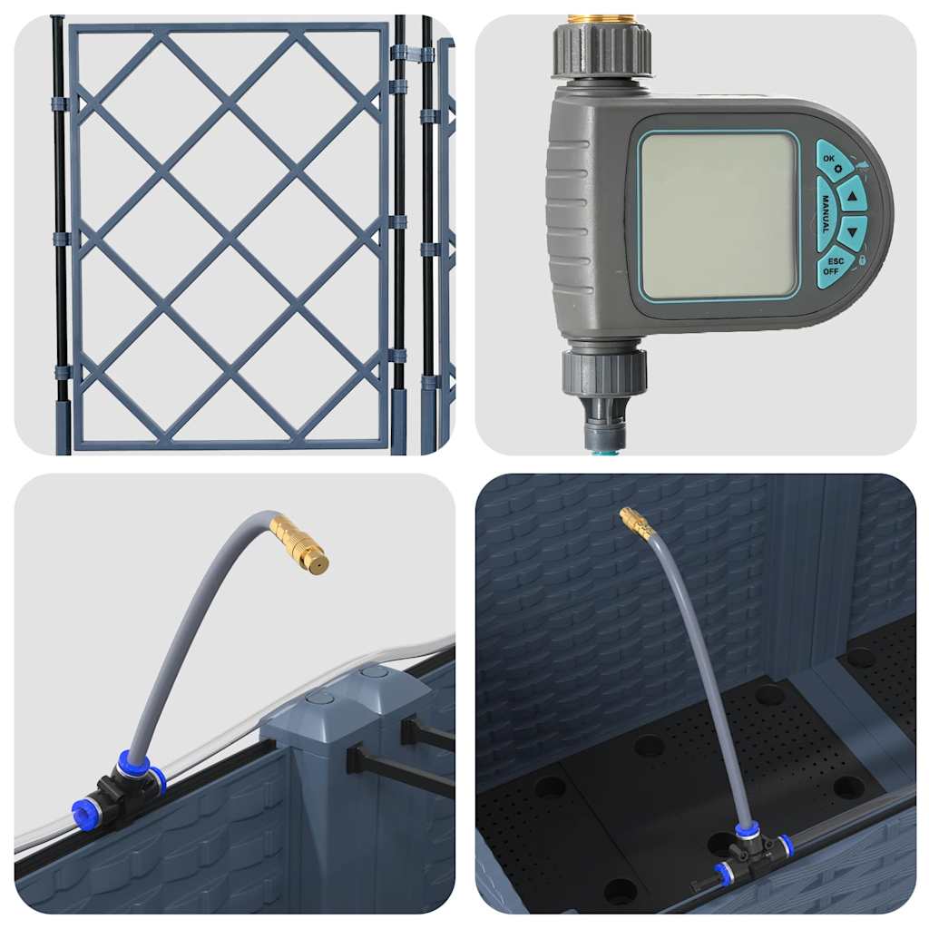 This planter box is a great all-rounder for outdoor gardening. It has a cool, modern style with a simple and clean look, making it a lovely addition to any garden or terrace. Whether you're sprucing up your patio with bright flowers or growing herbs for cooking, this planter will boost the charm of your outdoor space. Thanks to its sturdy build and practical design, it promises a long-lasting gardening experience. Sleek Modern Style This planter box has a simple and functional design. Its clean lines and minimal embellishments fit perfectly with any garden or terrace style, adding a touch of elegance to your outdoor space. UV Resistant Construction Made from UV-resistant steel, it promises to stand up to the sun. This strong material keeps the planter looking great and helps it last season after season, ensuring a trustworthy home for your plants. Built-in Irrigation System Enjoy an integrated watering system that makes taking care of your plants a breeze and helps them grow well. This handy feature cuts down on the need for constant watering, so you can relax while your garden thrives. Ample Plant Storage With loads of room, this planter can hold a variety of plants, from showy flowers to tasty herbs. Its spacious design lets you get creative with your garden layout, ensuring every plant has enough space to flourish. Convenient Care Process To keep your planter looking sharp, just wipe it down with a clean cloth to clear off dust. Keep it out of direct sunlight to help it last longer, and make sure everything is securely connected if you need to take it apart or move it—these simple tips will help keep it in great shape over time.