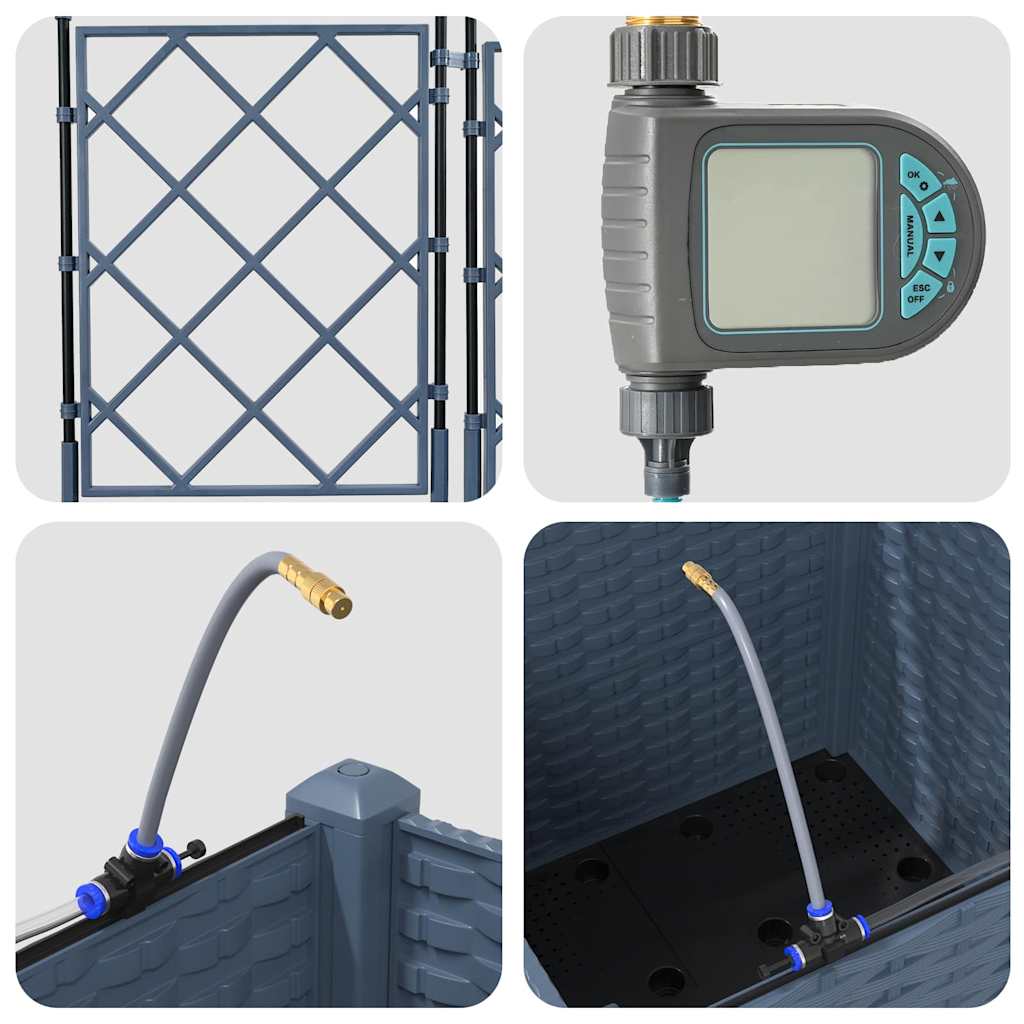 This planter box is a great all-rounder for outdoor gardening. It has a cool, modern style with a simple and clean look, making it a lovely addition to any garden or terrace. Whether you're sprucing up your patio with bright flowers or growing herbs for cooking, this planter will boost the charm of your outdoor space. Thanks to its sturdy build and practical design, it promises a long-lasting gardening experience. Sleek Modern Style This planter box has a simple and functional design. Its clean lines and minimal embellishments fit perfectly with any garden or terrace style, adding a touch of elegance to your outdoor space. UV Resistant Construction Made from UV-resistant steel, it promises to stand up to the sun. This strong material keeps the planter looking great and helps it last season after season, ensuring a trustworthy home for your plants. Built-in Irrigation System Enjoy an integrated watering system that makes taking care of your plants a breeze and helps them grow well. This handy feature cuts down on the need for constant watering, so you can relax while your garden thrives. Ample Plant Storage With loads of room, this planter can hold a variety of plants, from showy flowers to tasty herbs. Its spacious design lets you get creative with your garden layout, ensuring every plant has enough space to flourish. Convenient Care Process To keep your planter looking sharp, just wipe it down with a clean cloth to clear off dust. Keep it out of direct sunlight to help it last longer, and make sure everything is securely connected if you need to take it apart or move it—these simple tips will help keep it in great shape over time.