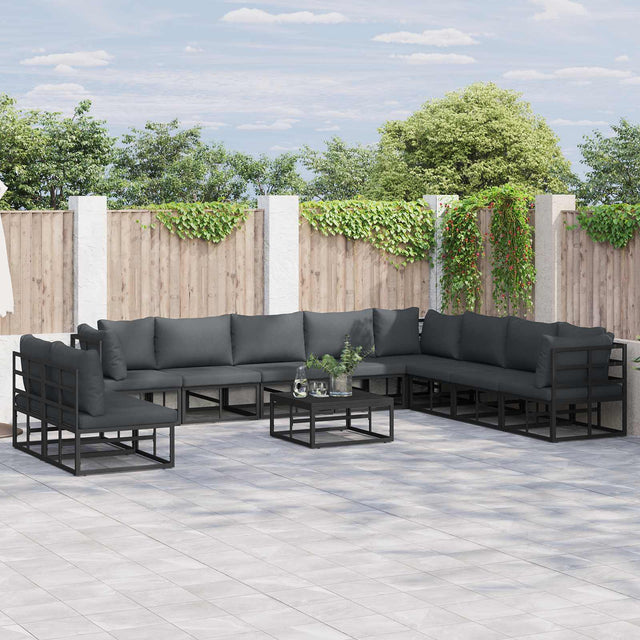 Garden Sofa Set with Cushion 11 pcs Black Aluminium