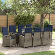 Garden Dining Set with Cushion 9 pcs Grey Poly Rattan