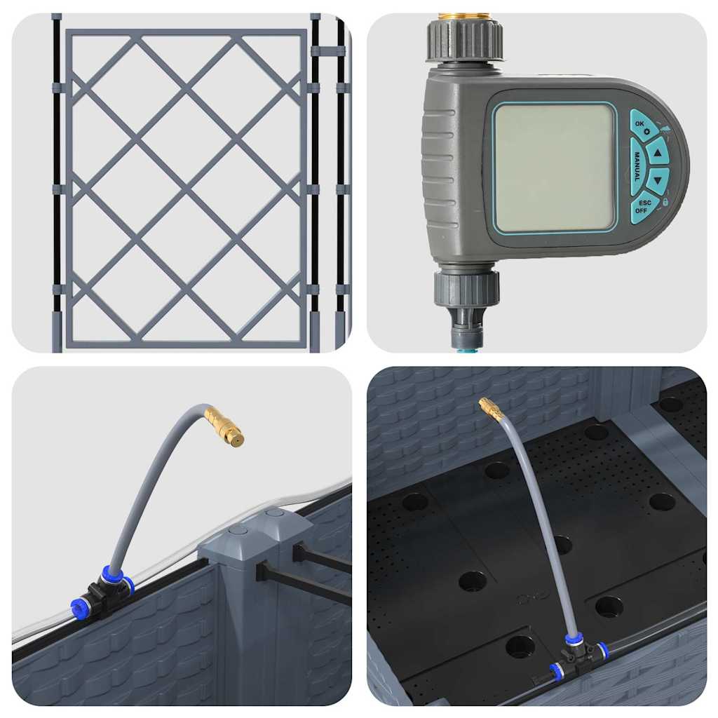 This planter box is a great all-rounder for outdoor gardening. It has a cool, modern style with a simple and clean look, making it a lovely addition to any garden or terrace. Whether you're sprucing up your patio with bright flowers or growing herbs for cooking, this planter will boost the charm of your outdoor space. Thanks to its sturdy build and practical design, it promises a long-lasting gardening experience. Sleek Modern Style This planter box has a simple and functional design. Its clean lines and minimal embellishments fit perfectly with any garden or terrace style, adding a touch of elegance to your outdoor space. UV Resistant Construction Made from UV-resistant steel, it promises to stand up to the sun. This strong material keeps the planter looking great and helps it last season after season, ensuring a trustworthy home for your plants. Built-in Irrigation System Enjoy an integrated watering system that makes taking care of your plants a breeze and helps them grow well. This handy feature cuts down on the need for constant watering, so you can relax while your garden thrives. Ample Plant Storage With loads of room, this planter can hold a variety of plants, from showy flowers to tasty herbs. Its spacious design lets you get creative with your garden layout, ensuring every plant has enough space to flourish. Convenient Care Process To keep your planter looking sharp, just wipe it down with a clean cloth to clear off dust. Keep it out of direct sunlight to help it last longer, and make sure everything is securely connected if you need to take it apart or move it—these simple tips will help keep it in great shape over time.