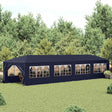 This garden marquee is a wonderful place to entertain your family and friends at all sorts of outdoor parties and get-togethers. You can also install it in your backyard as a large sunshade for your family and guests. Made of 100% polyethylene material, the party tent is UV resistant and water resistant. The marquee has 8 removable side panels, each with decorative windows, and 2 door panels with zips for easy entrance. This frame is manufactured from rust-resistant steel and thus highly durable. Assembly is easy. NOTE: This product should NEVER be used under bad weather, such as strong wind, heavy rain, snow, storm, etc.