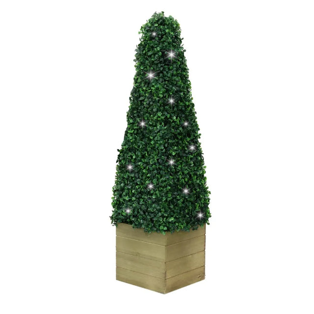 This solar obelisk topiary from Gardenwize is a wonderful addition to any garden setting. While this is an artificial garden plant, it has been specifically designed and crafted to look like a well-maintained garden plant.