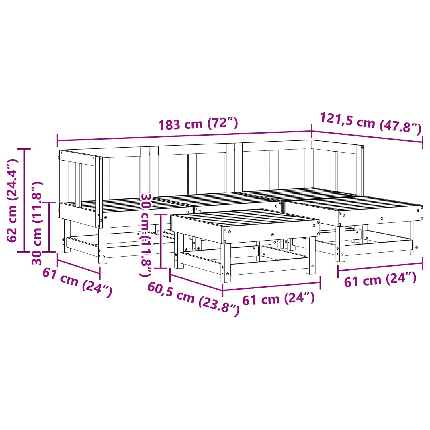 Garden Lounge Set 5 pcs Wax Brown Solid Pine Wood