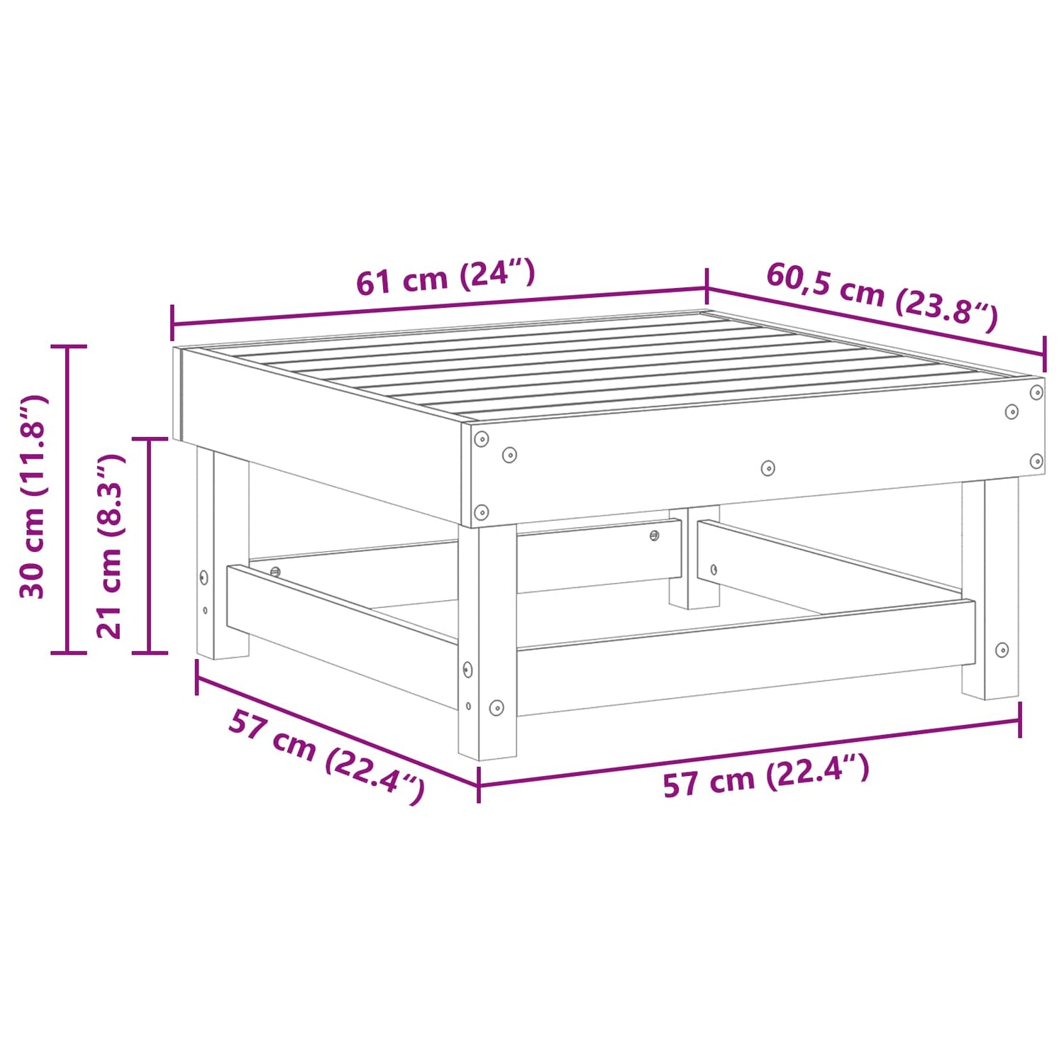 - Overall dimensions: 61 x 60.5 x 30 cm (L x W x H)
