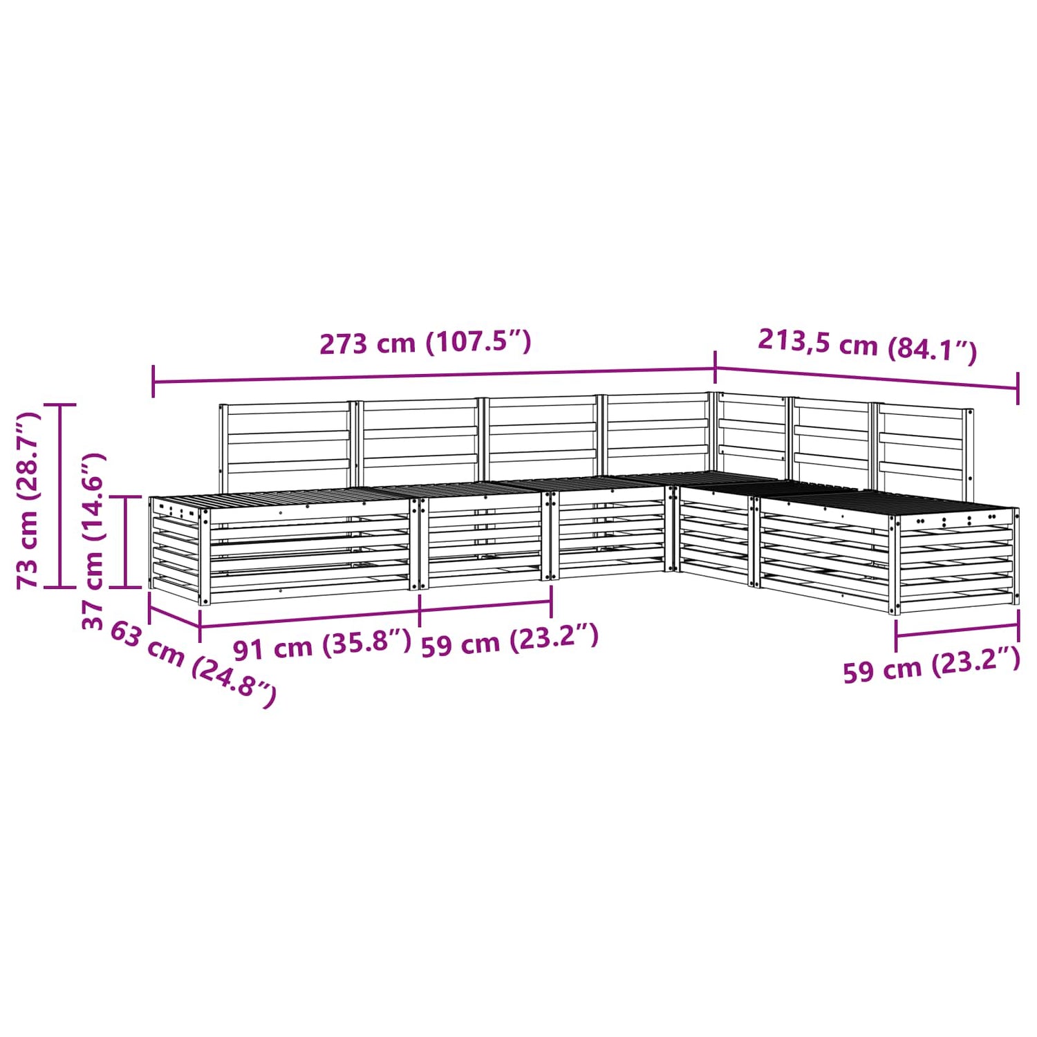 - Overall dimensions: 273 x 213.5 x 73 cm (L x W x H)