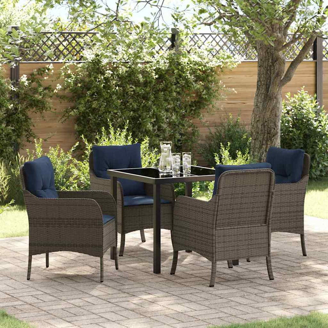 Garden Dining Set with Cushion 5 pcs Grey Poly Rattan