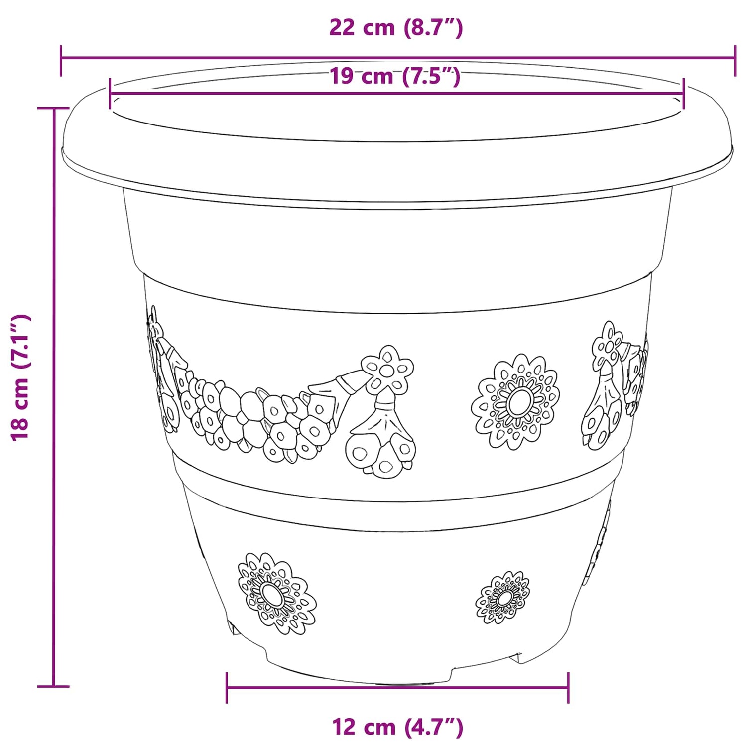 - Overall dimensions: 22 x 22 x 18 cm (L x W x H)