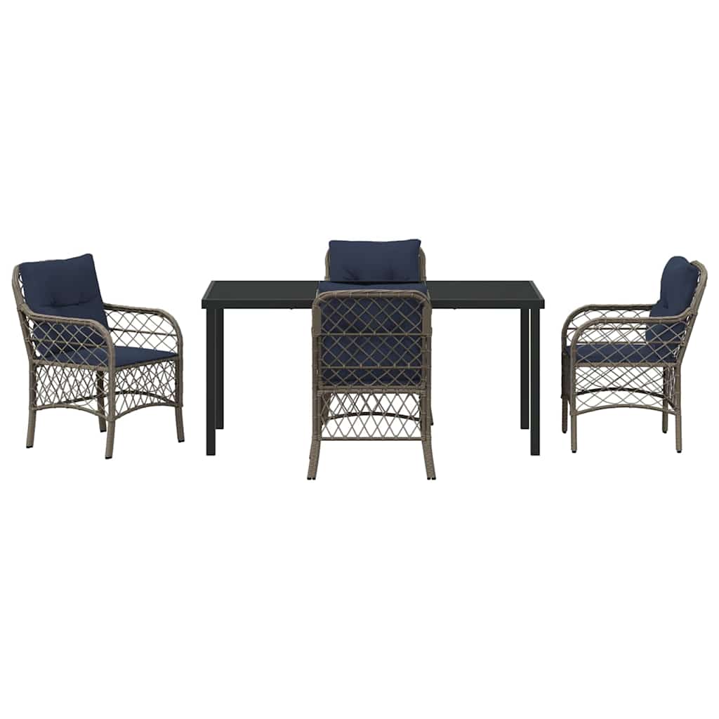 Garden Dining Set with Cushion 5 pcs Grey and Black Rattan