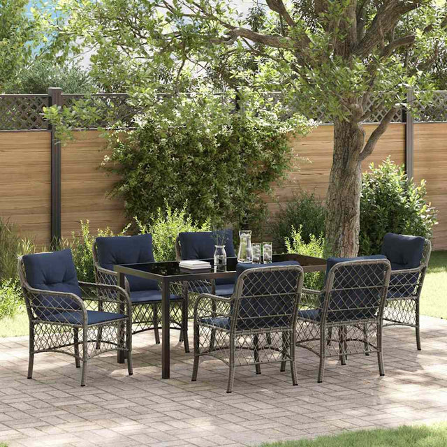 Garden Dining Set with Cushion 7 pcs Grey and Black Rattan