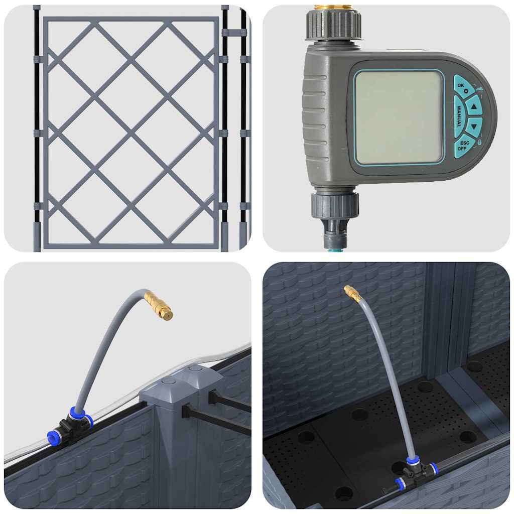 This planter box is a great all-rounder for outdoor gardening. It has a cool, modern style with a simple and clean look, making it a lovely addition to any garden or terrace. Whether you're sprucing up your patio with bright flowers or growing herbs for cooking, this planter will boost the charm of your outdoor space. Thanks to its sturdy build and practical design, it promises a long-lasting gardening experience. Sleek Modern Style This planter box has a simple and functional design. Its clean lines and minimal embellishments fit perfectly with any garden or terrace style, adding a touch of elegance to your outdoor space. UV Resistant Construction Made from UV-resistant steel, it promises to stand up to the sun. This strong material keeps the planter looking great and helps it last season after season, ensuring a trustworthy home for your plants. Built-in Irrigation System Enjoy an integrated watering system that makes taking care of your plants a breeze and helps them grow well. This handy feature cuts down on the need for constant watering, so you can relax while your garden thrives. Ample Plant Storage With loads of room, this planter can hold a variety of plants, from showy flowers to tasty herbs. Its spacious design lets you get creative with your garden layout, ensuring every plant has enough space to flourish. Convenient Care Process To keep your planter looking sharp, just wipe it down with a clean cloth to clear off dust. Keep it out of direct sunlight to help it last longer, and make sure everything is securely connected if you need to take it apart or move it—these simple tips will help keep it in great shape over time.